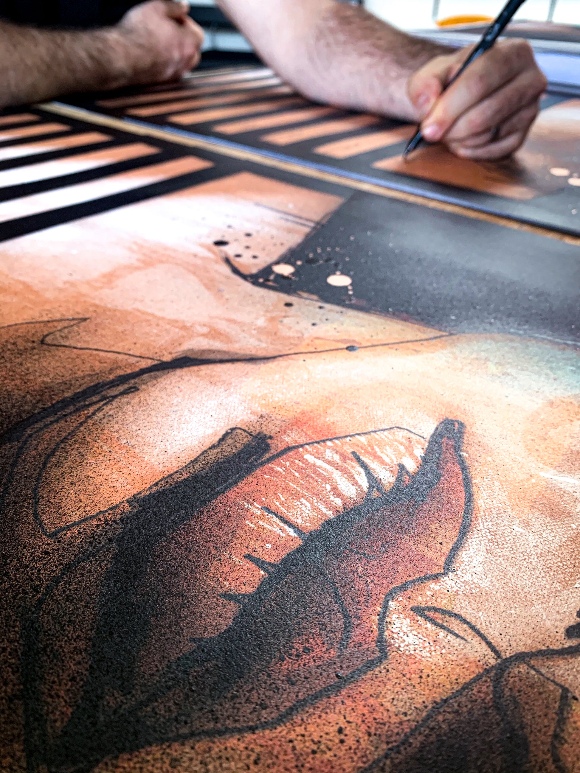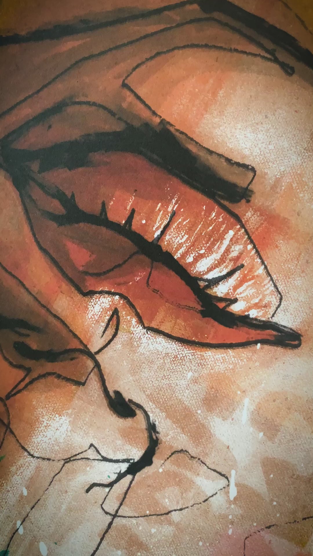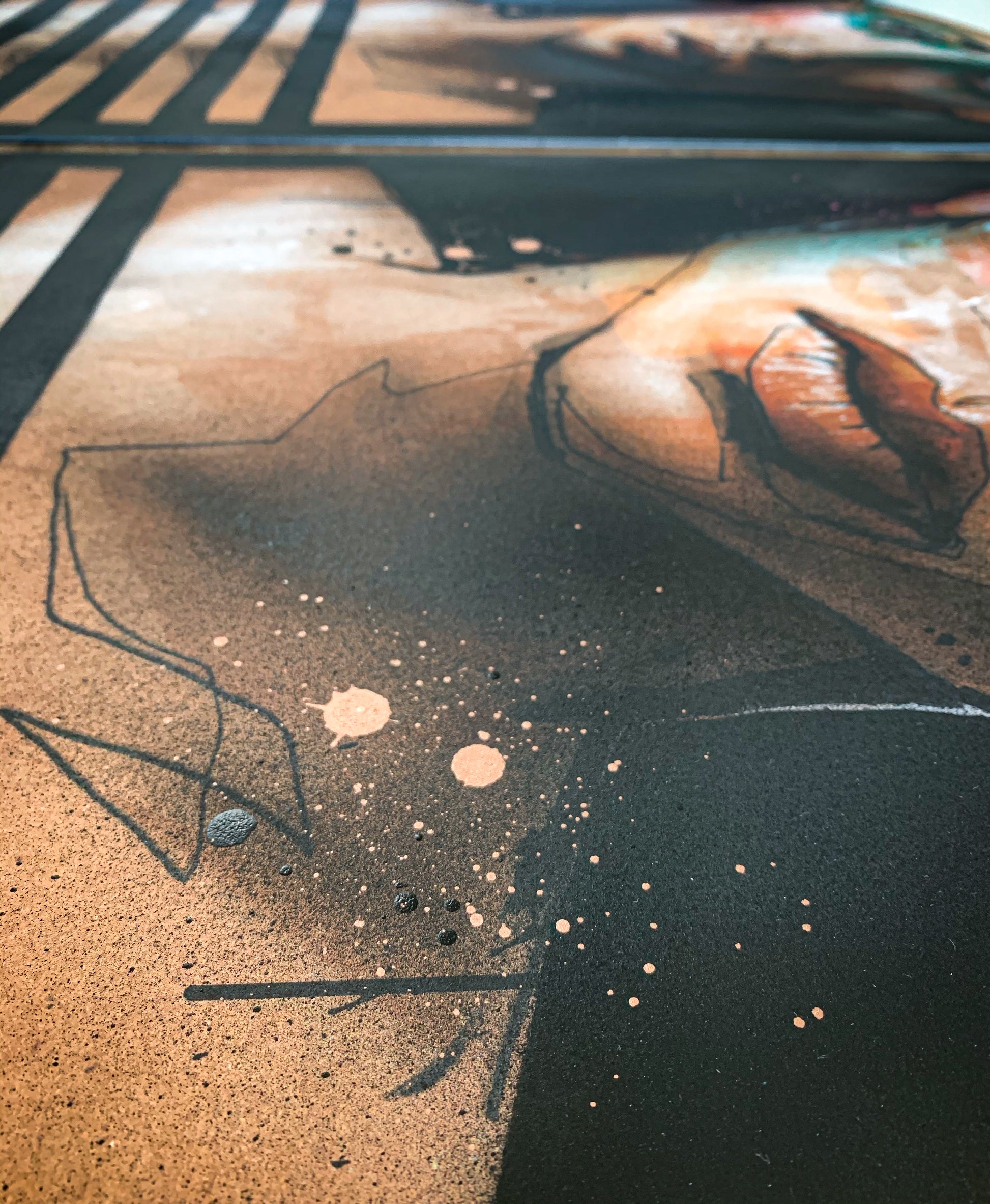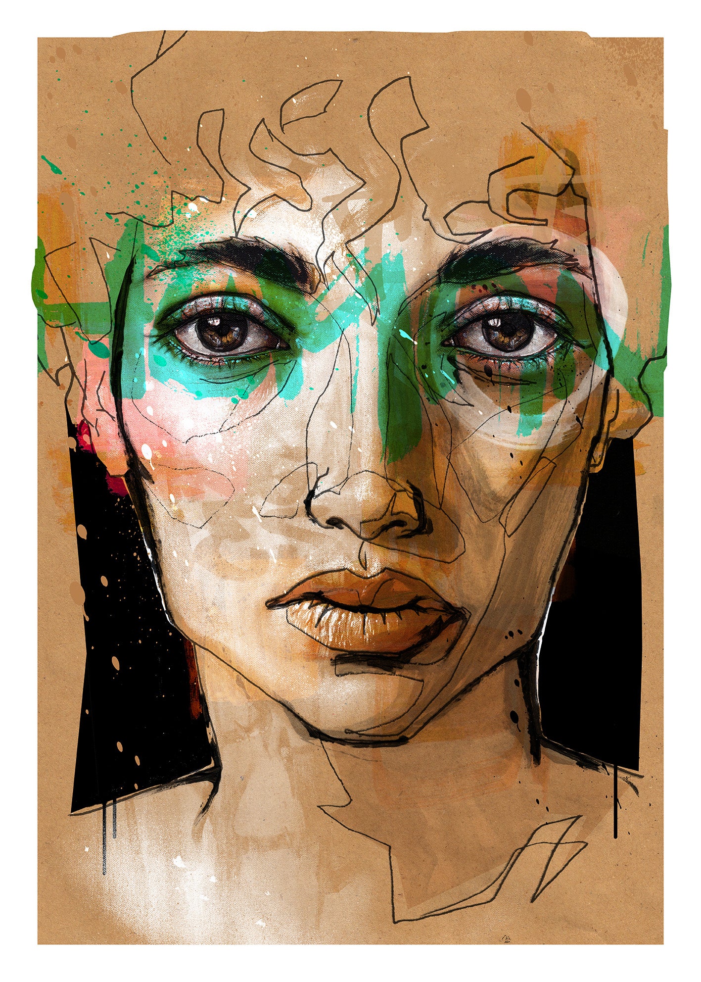 Dans "HUMANS BE HUMAN", Akut revisite ses racines du graffiti a travers l'utilisation de lignes, d'éclaboussures de peinture et de projections de bombe aérosol pour faire emerger l'œuvre. Des yeux hyperréalistes expriment l'unicité de cette création. Comme les gènes sculptent l'humanité, les outils artistiques façonnent une composition singulière. L'ambiguïté de genre interpelle le spectateur, l'incitant à réfléchir sur son importance dans l'interprétation artistique. Akut nous encourage à dépasser les stéréotypes, accueillant cette représentation simplement comme un portrait, et prônant un retour aux fondements de la connexion entre les êtres humains.