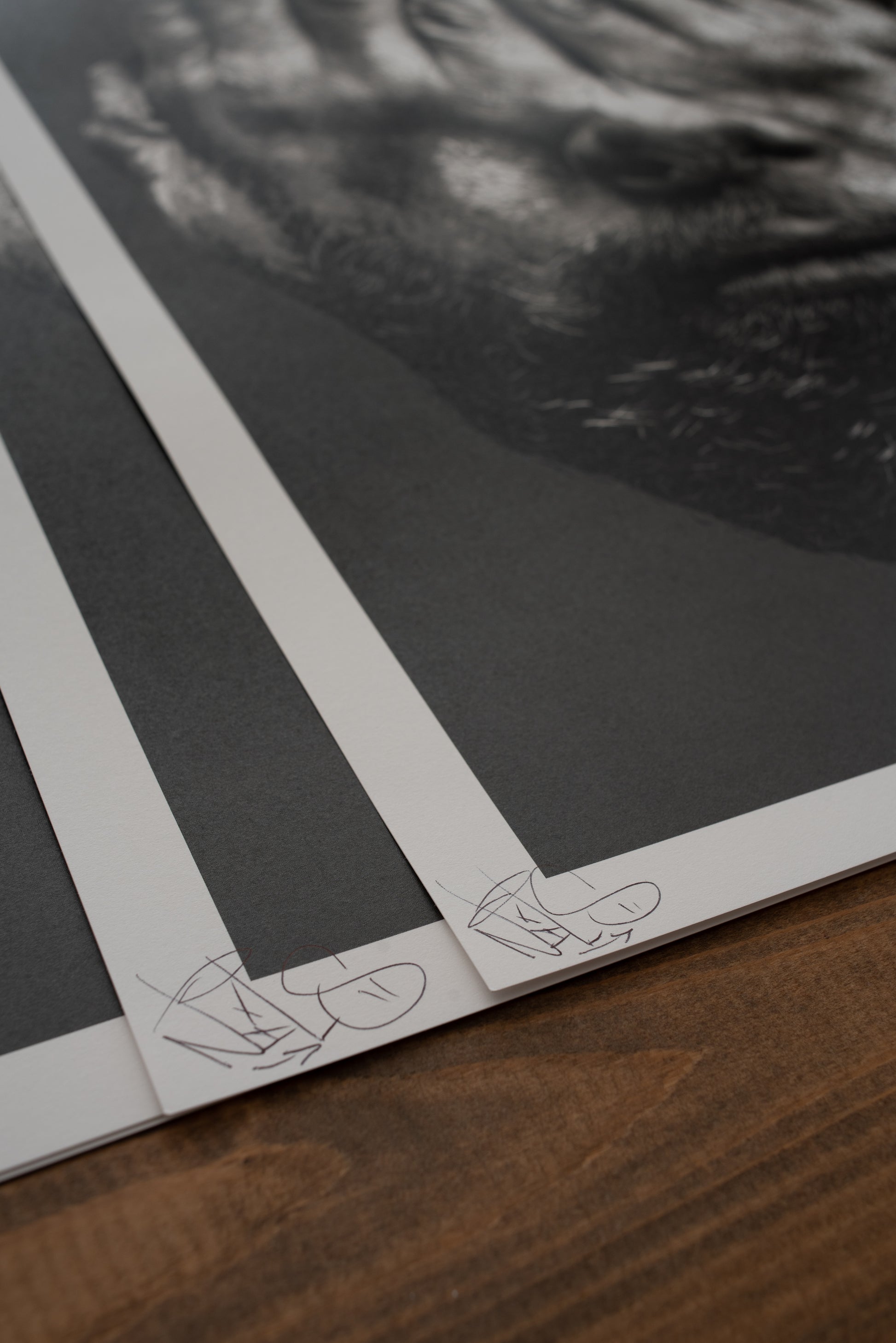 Livré avec un certificat d'authenticité sur un autocollant que vous pouvez décider de coller à l'arrière de l'oeuvre, d'un cadre ou de conserver séparément.