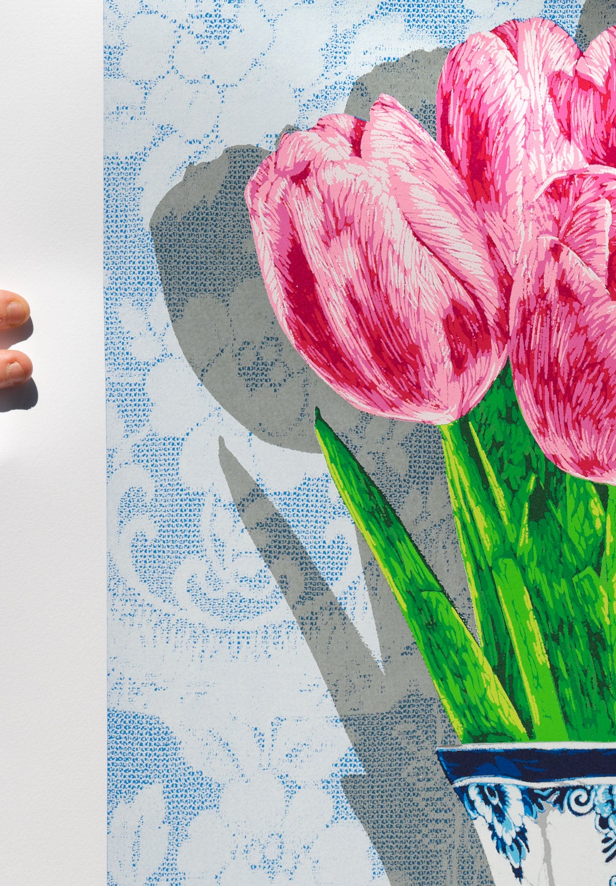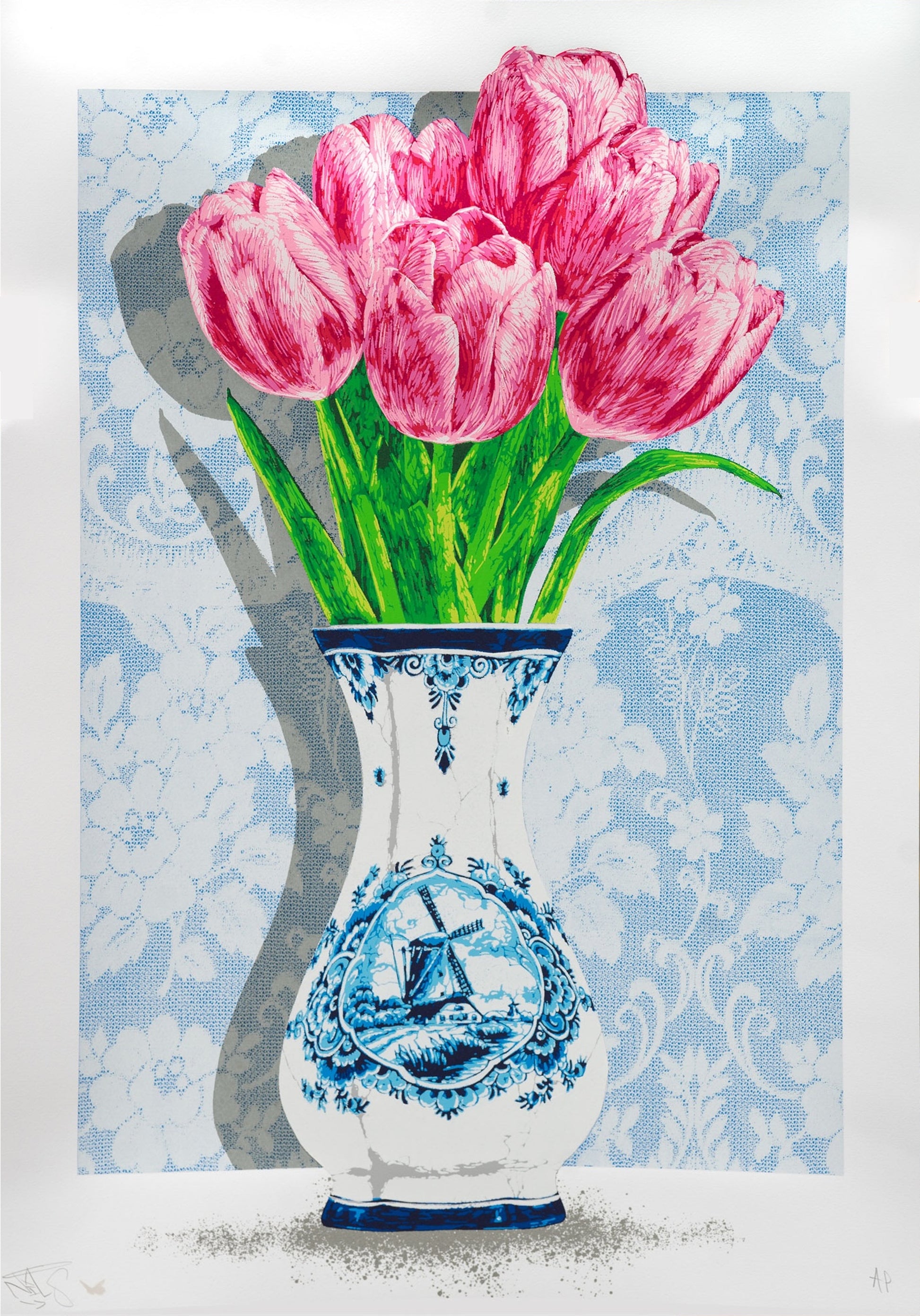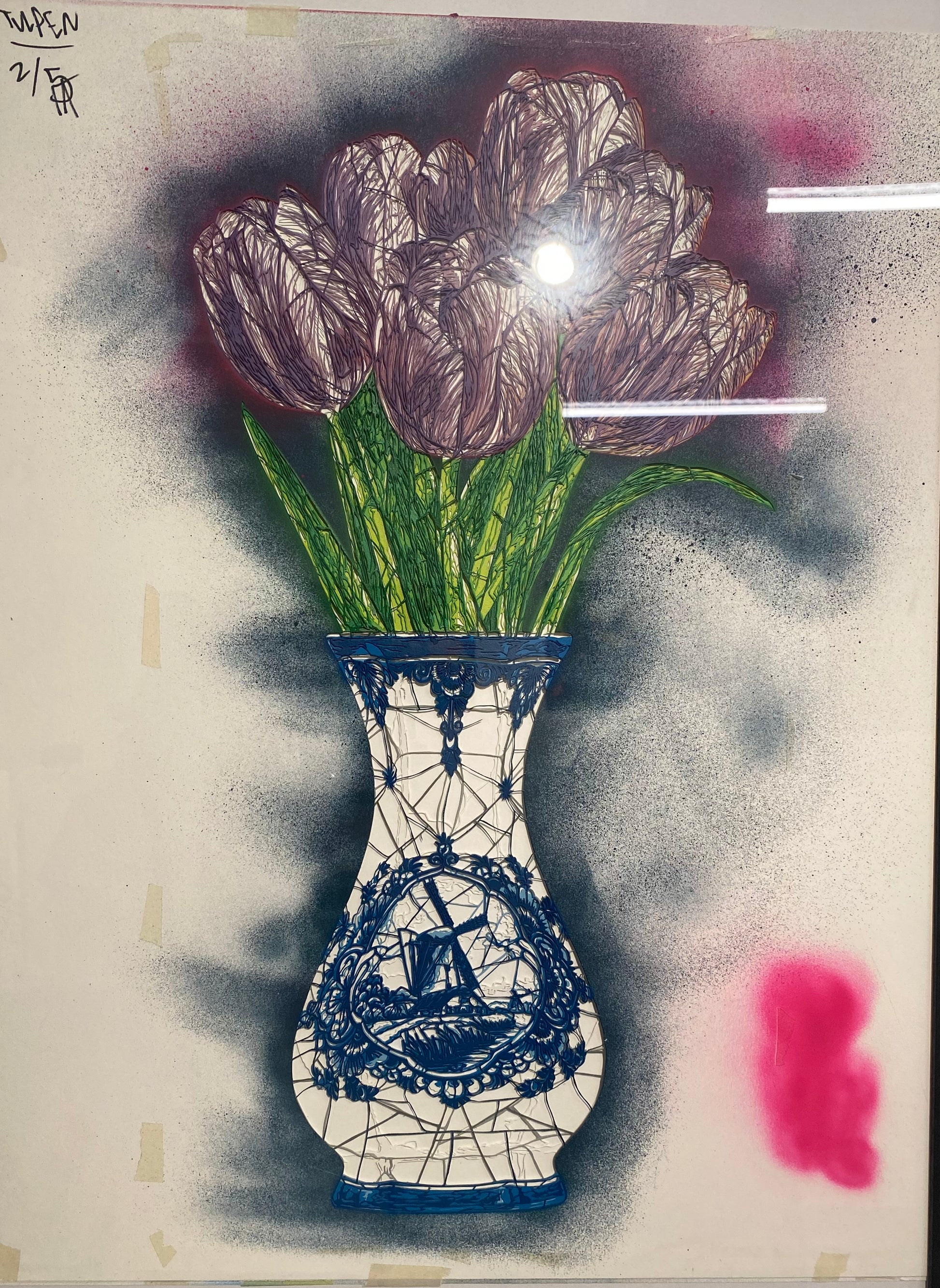 Issue d'une série de variations autour du pochoir original "Tulpen", NILS a représenté, d'après nature, un bouquet frais de ces fleurs emblématiques des Pays-Bas.